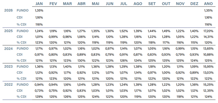 Encerramos o ano com cerca de 10% de caixa, patamar que pretendemos reduzir nas próximas semanas, dado o pipeline robusto de novas operações em estruturação.