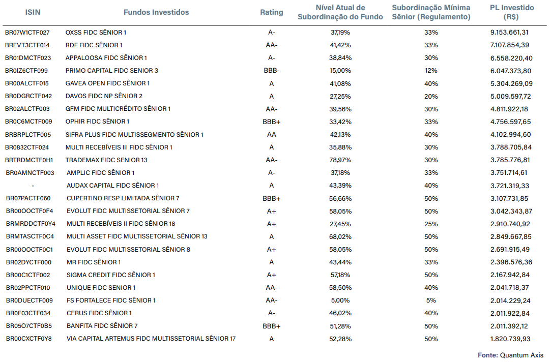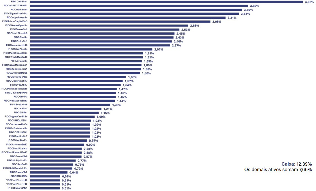 Apesar do valor absoluto elevado – R$ 3,9 bilhões em patrimônio líquido somado – esse montante representa apenas 0,5% do total da indústria de FIDCs. De acordo com o levantamento, a Master CCTVM administra 52 fundos, enquanto o Banco Master figura como cedente em apenas 6. Como apenas um desses FIDCs administrados pela Master possui ativos emitidos pelo próprio banco, o impacto esperado é limitado. Além disso, os gestores – terceiros independentes – têm acesso aos dados e são responsáveis pela verificação do lastro, o que reduz o risco estrutural.